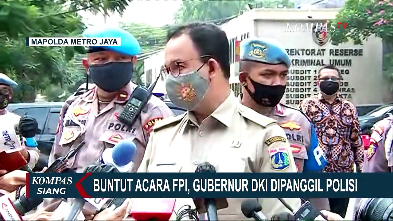 JAKARTA, KOMPAS.TV - Gubernur DKI Jakarta Anies Baswedan pada 17 November 2020 memenuhi panggilan Polda Metro Jaya untuk memberikan klarifikasi kasus dugaan pelanggaran protokol kesehatan pada acara Maulid Nabi dan resepsi pernikahan putri pemimpin FPI Rizieq Shihab.